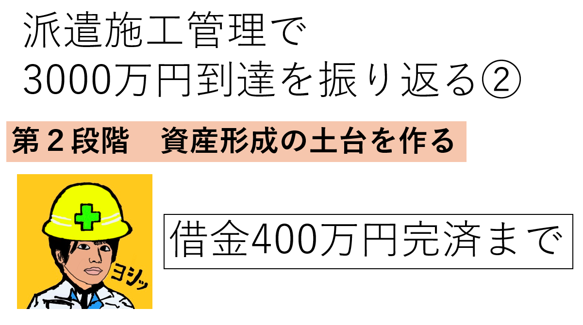 今回は、派遣の施工管理として働きはじめた当時の400万円の借金を返済して、資産形成のスタートラインに立つまでの土台作りについて書いていきます。